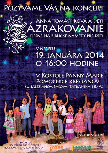 Anna Tomaštiková a jej detský zbor uvádzajú piesne pre deti na bilické námety. Súčasťou koncertu bude uvedenie CD Zázrakovanie do života. Už v nedeľu 19. januára 2014 u Saleziánov v Banskej Bystrici o 16:00 hod.