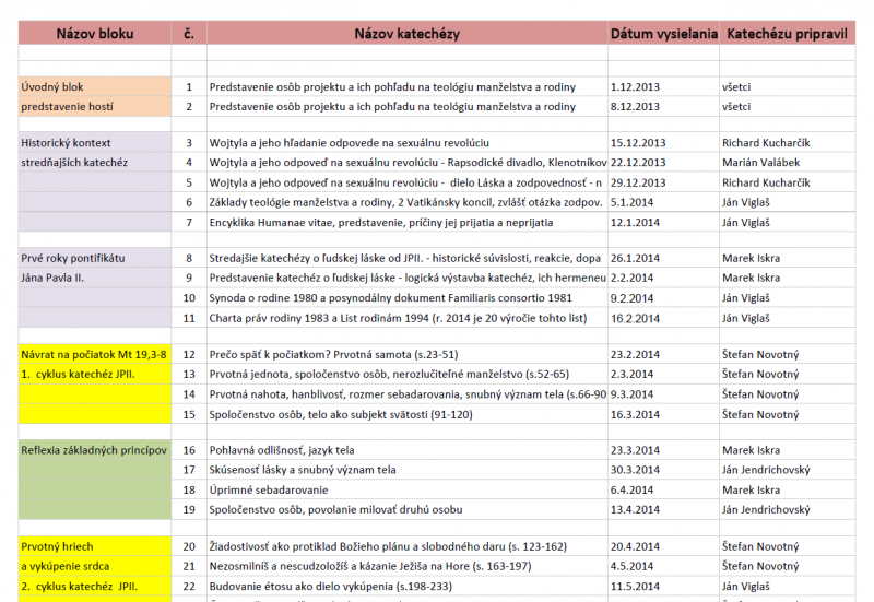 Našou úlohou nie je proti niekomu bojovať, ale predovšetkým ponúkať alternatívu, víziu krásneho vzťahu ktorú svet – ak nechce poznať Boha – nikdy nespozná. Celá kampaň ohľadom referenda sa dá využiť na ohlasovanie Slova života a Daru Lásky. Dá sa povedať, že sme skutočne vo výnimočnej situácii. Myslím, že rozhodujúce je byť schopným čestne a účinne vysloviť pravdu o ľudskej láske a pravdu o manželstve a rodine. Osobne nosím hlboko v srdci katechézy o ľudskej láske od sv. Jána Pavla II. a rád by som sa tu poďakoval Rádiu Lumen , že už viac ako rok poskytuje priestor pre ich exegézu vo svojom vysielaní. Katechézy o ľudskej láske sú totiž kľúčové pre účinnú pastoráciu kňazov v dnešných farnostiach i manželov pre ich objavenie krásy manželstva. V prílohe nájdete rozpis katechéz ako odzneli na Rádiu Lumen a aj hyperlink na archív odkiaľ sa dajú stiahnuť[18].