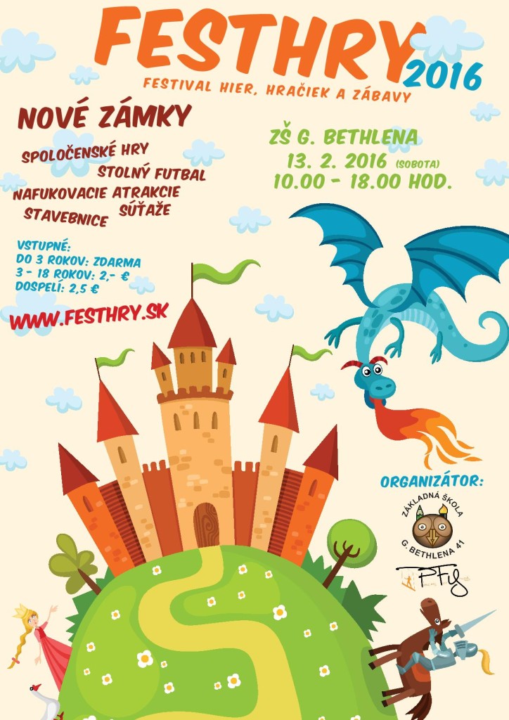 Hlavným spoluorganizátorom projektu je pre región Nové Zámky ZŠ G. Betlehena 41, v jeho priestoroch sa FEST-HRY uskutočnia.