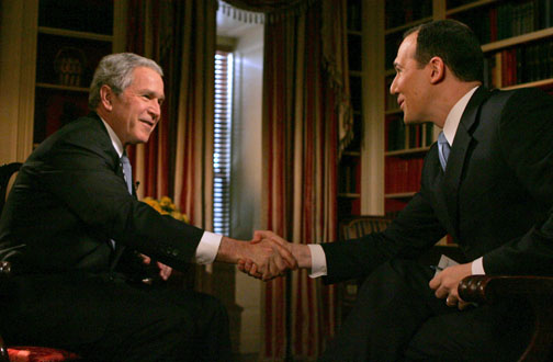 BUSH: Pretože tam cestujem predovšetkým kvôli olympijským hrám. Moje plány sa nezmenili. Dôvod, prečo tam idem? O náboženskej slobode môžem hovoriť pred, po aj počas olympijských hier, čo som aj vždy robil. Nepotrebujem olympijské hry, aby som to čínskej vláde predostrel. Ako prezident som to už vždy robil. Inými slovami – keď mi ľudia hovoria – musíte sa k náboženskej slobode jasne vyjadriť, tak moja odpoveď znie: Čo si myslíte, že som doteraz robil?